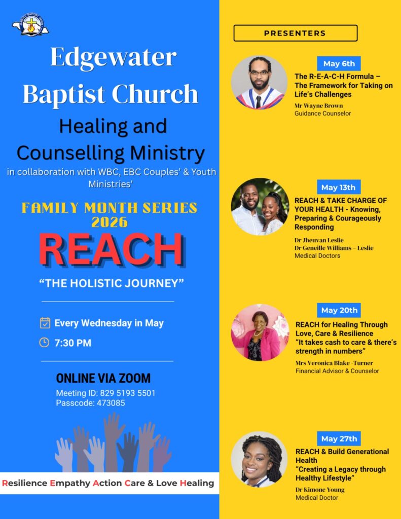 Edgewater Baptist Church is set to host a meaningful and timely “Family Month Series 2026” under the theme REACH: The Holistic Journey. Organized by the church’s Healing and Counselling Ministry in collaboration with couples’ and youth ministries, this virtual event aims to equip individuals and families with practical tools for navigating life’s challenges.